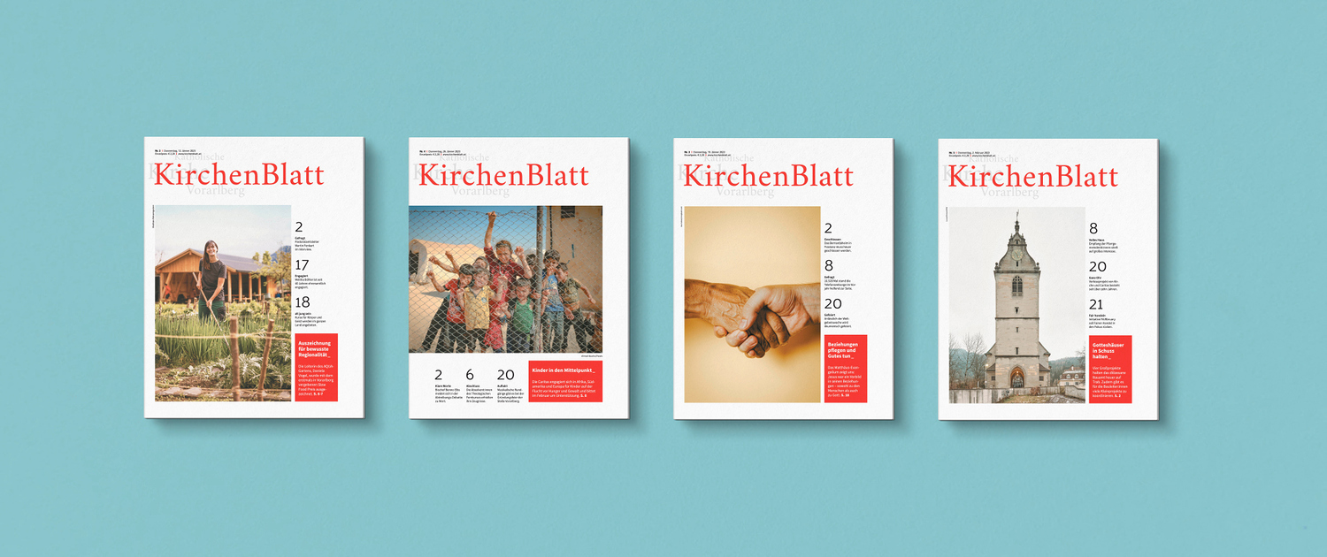 Das Vorarlberger KirchenBlatt ist eine kirchliche Wochenzeitung. Es erscheint seit 80 Jahren und zeichnet sich durch eine bemerkenswerte - und für Sie als Inserent:in bedeutsam - starke Leser-Blatt-Bindung aus. Das KirchenBlatt genießt bei seinen Leser:innen eine hohe Glaubwürdigkeit.