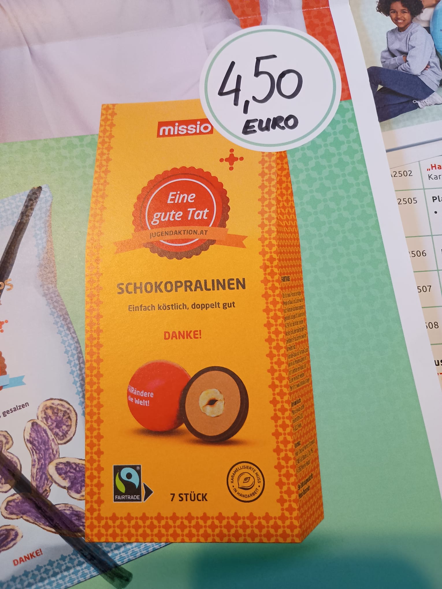 Auch dieses Jahr verkaufen unsere Ministranten nach der Heiligen Messe die Missio-Pralinen um sensationelle 4,50 Euro pro Packung.